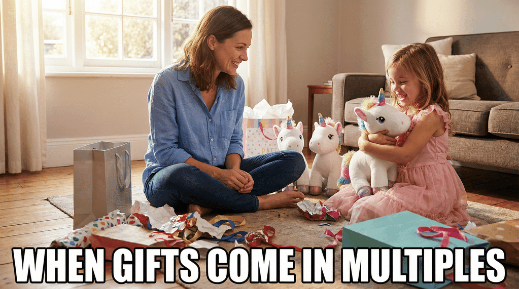 The grandparents meant well. So did your sister, your neighbor, and three party guests. Now you’re standing in your living room after your daughter’s birthday, surrounded by four identical unicorn plushies and wondering how this happened.