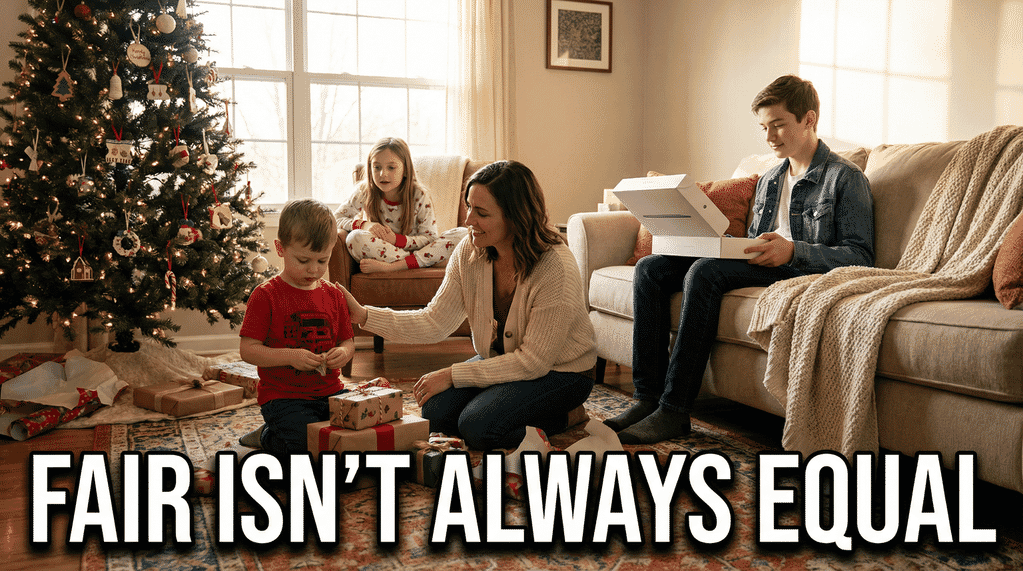 This scene plays out annually in my house. If you need scripts for these exact Christmas moments, I have those too, with variations across all eight of my kids. And here’s what my librarian brain couldn’t let go: why does “unfair” feel so devastating to children at certain ages, and why do kids at different stages interpret fairness so differently?
