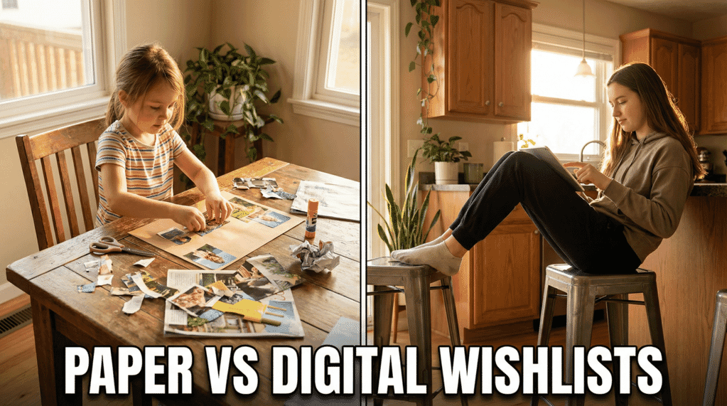 Physical wishlists build thinking skills. Digital wishlists improve family coordination. Match the format to your goal.